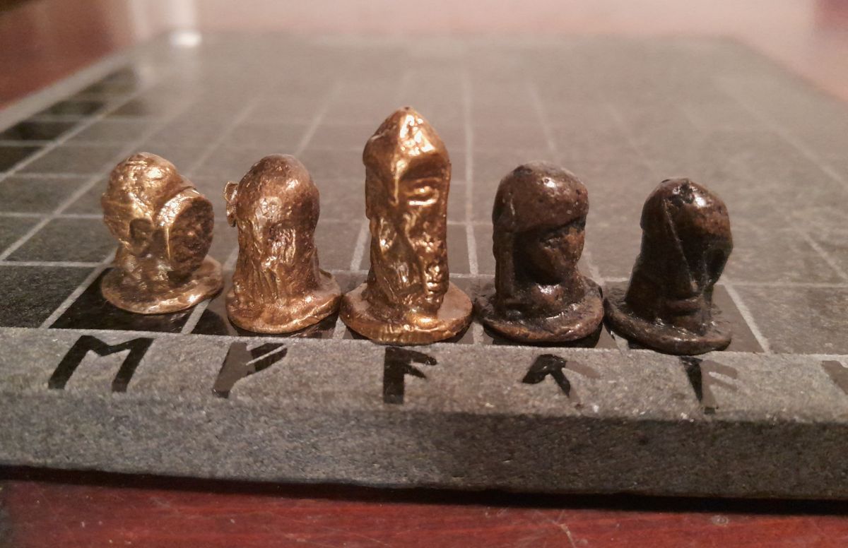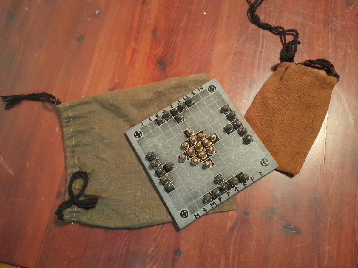 Hnefatafl -lautapeli kivestä ja pronssista