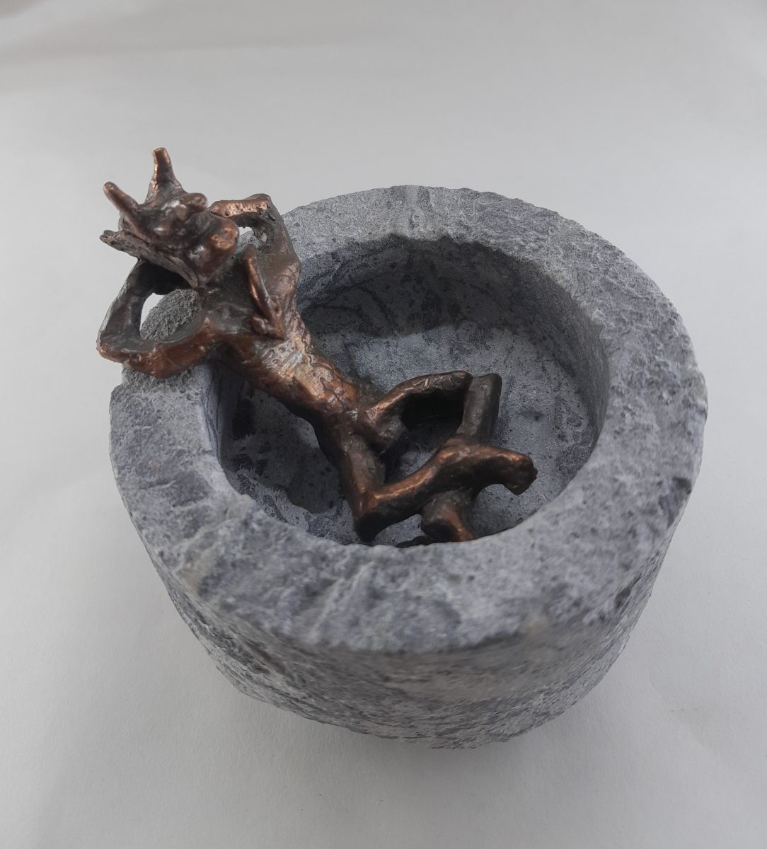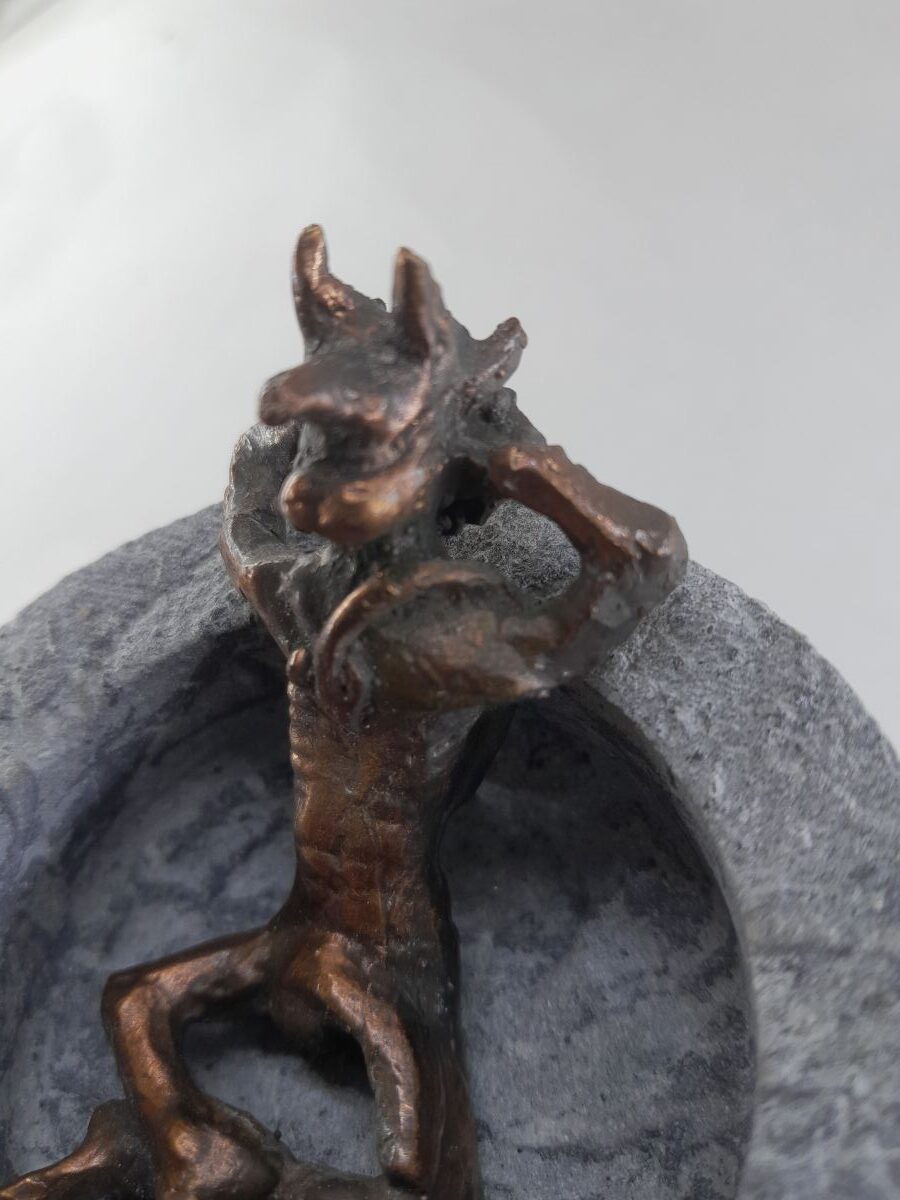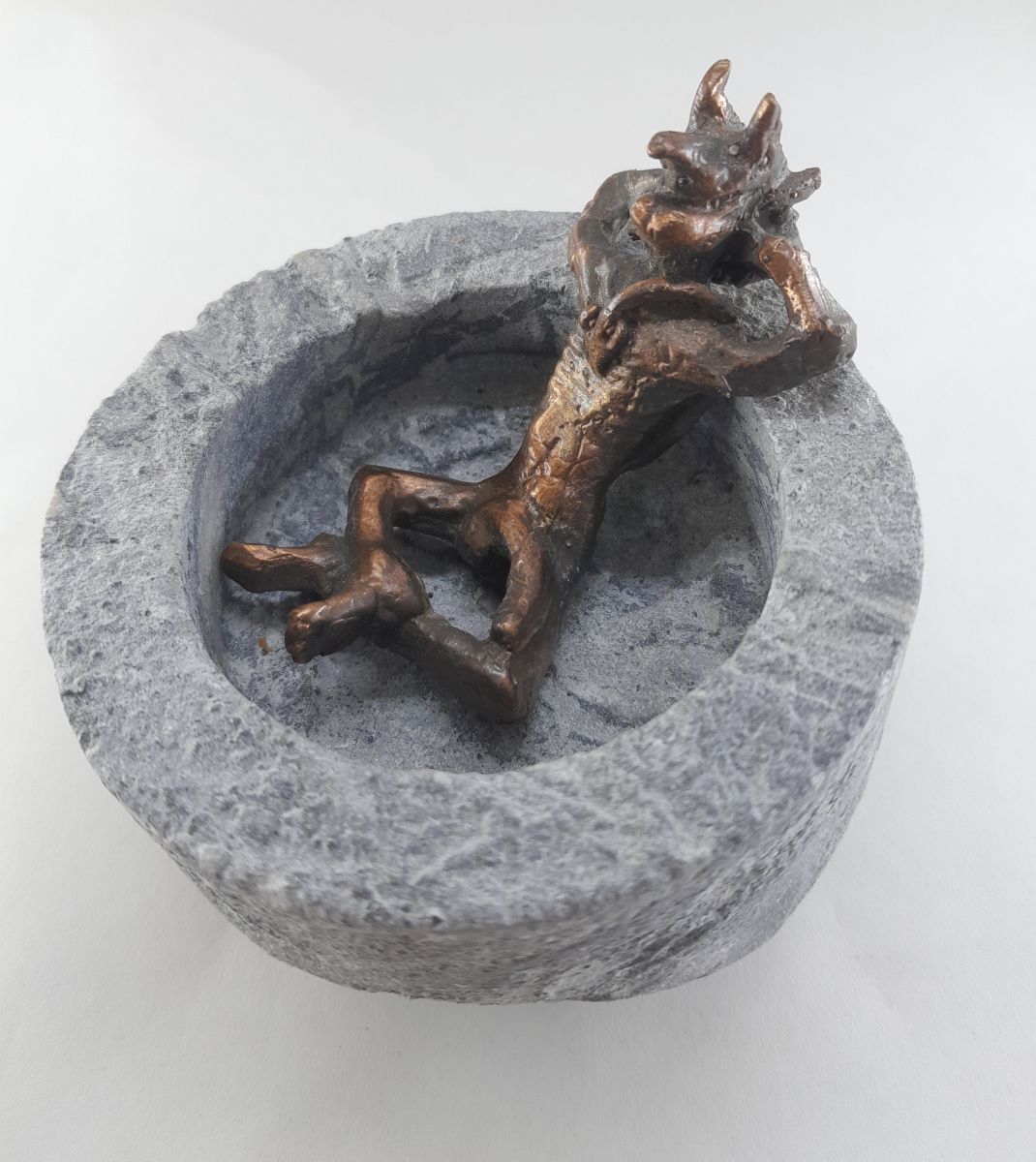 Piru kylvyssä vuolukivi paljussa. Pirun korkeus n 60 mm