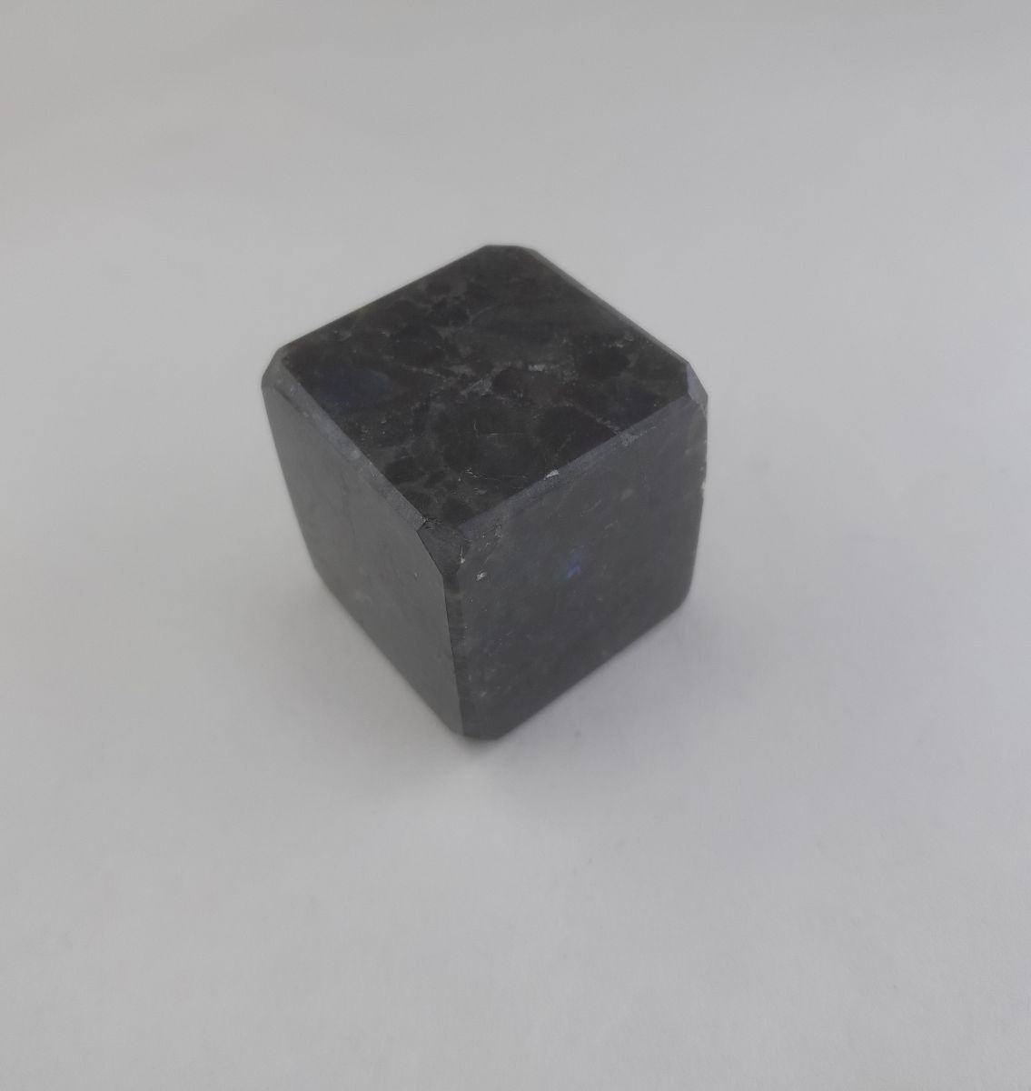 Kivinen kiillotettu spektroliitti kuutio esim viilentämään drinkkejä laimentamatta. Koko n. 3x3x3 cm